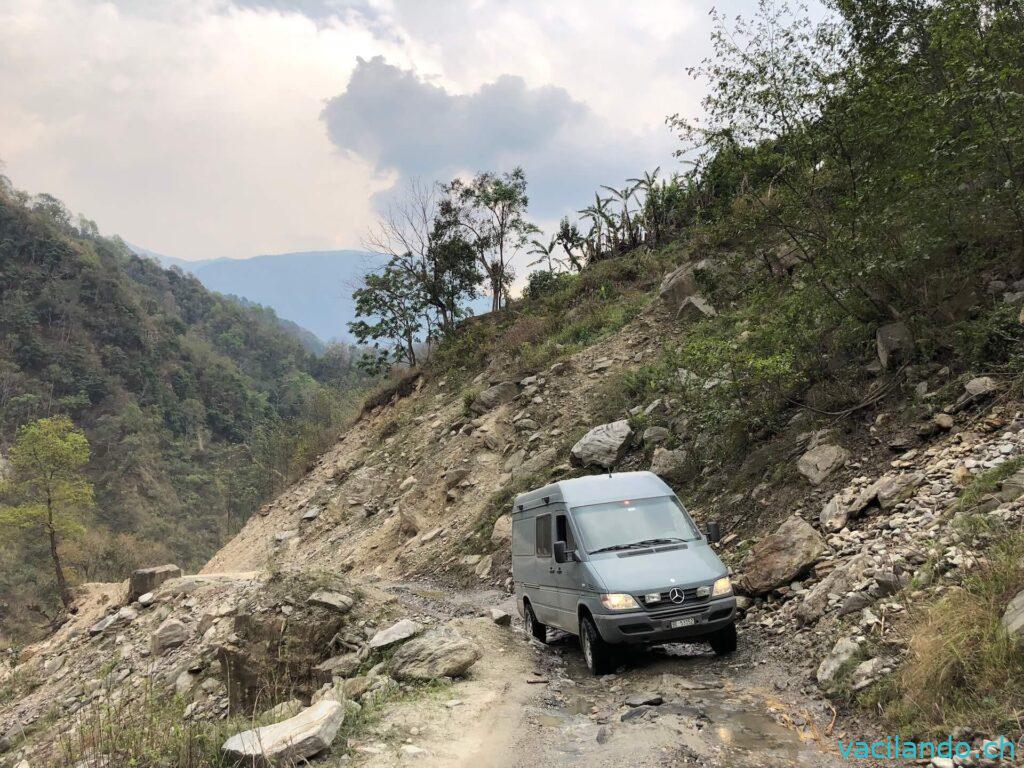 Zurück beim Camper essen wir im Guesthouse und füllen unser Trinkwasser auf. Nach Chapatti geben wir eine Führung durch unser Wohnmobil und dann fahren wir zurück. Diesmal einen anderen Weg, doch nach 10h Fahrt sind wir am Anschlag und finden einen Übernachtungsplatz an einem Fluss. Nach dem alltäglichen Morgenessen fahren wir wieder hoch zum Aussichtspunkt. Die Abkürzung verwandelt sich in eine Schlammpiste und dank 4×4 erreichen wir wieder eine feste Strasse. Beim letzten Mal hier oben haben wir einen Flip Flop verloren und tatsächlich liegt er noch dort. Es geht weiter nach Bakthapur und zurück zum Camping in Kathmandu. Hier treffen wir Freunde von Estland, welche wir in Indien kennen gelernt haben. So verbringen wir einige Zeit miteinander. Nach einem Ruhe/Waschtag geht es mit einem Mottorad in die Stadt. Wir kaufen noch Geschenke ein für unsere Familien und haben mit unseren Freunden einen schönen Abend zusammen. Heute fahren wir ins Langtanggebiet.